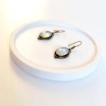 Antique Bronze Framed Oval Opal Earrings