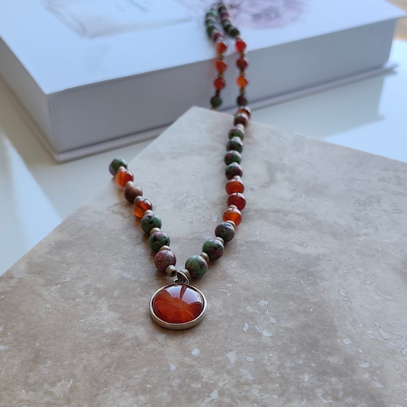 Natural Stone Pendant: The Carnelian stone in the pendant adds an elegant and stylish touch.
