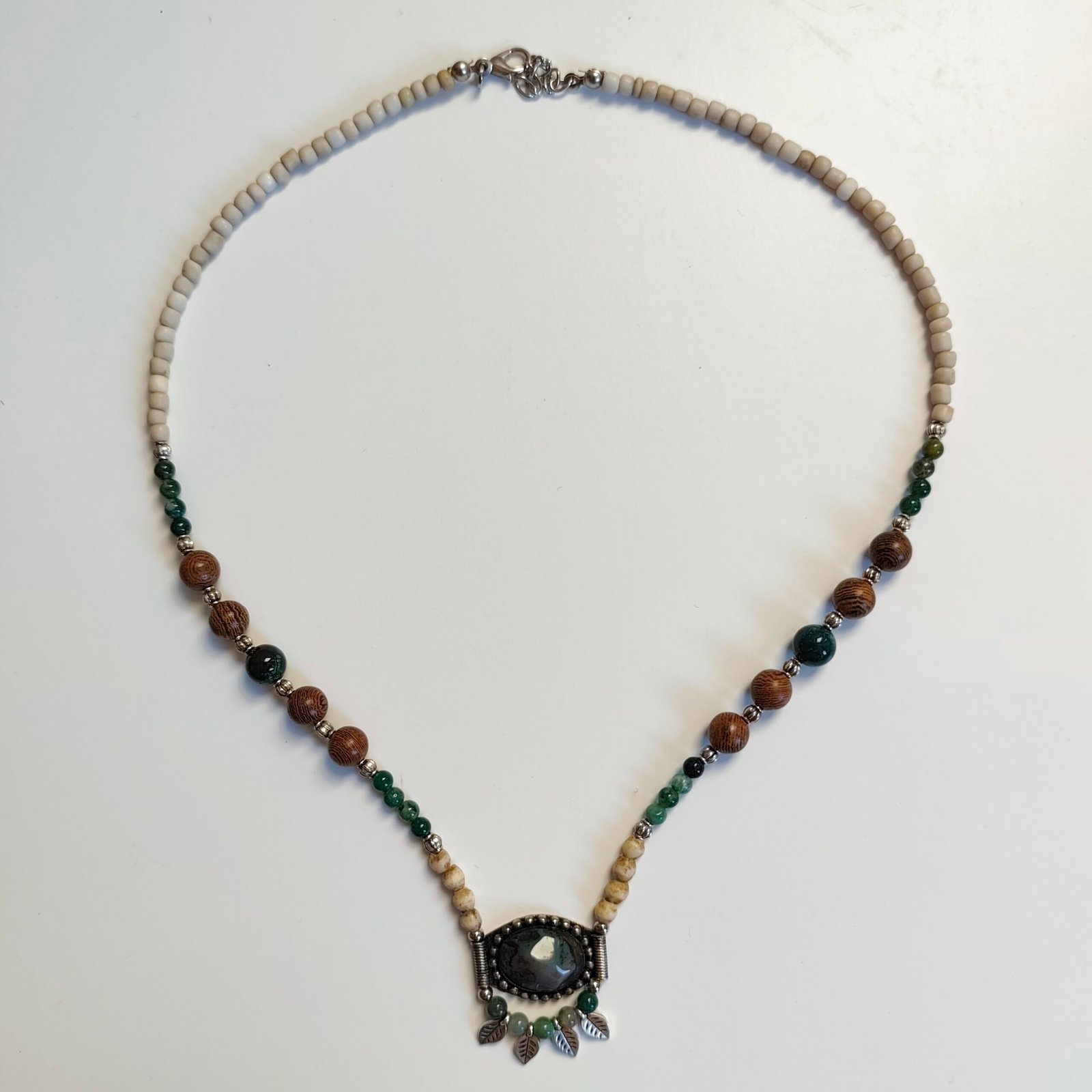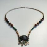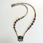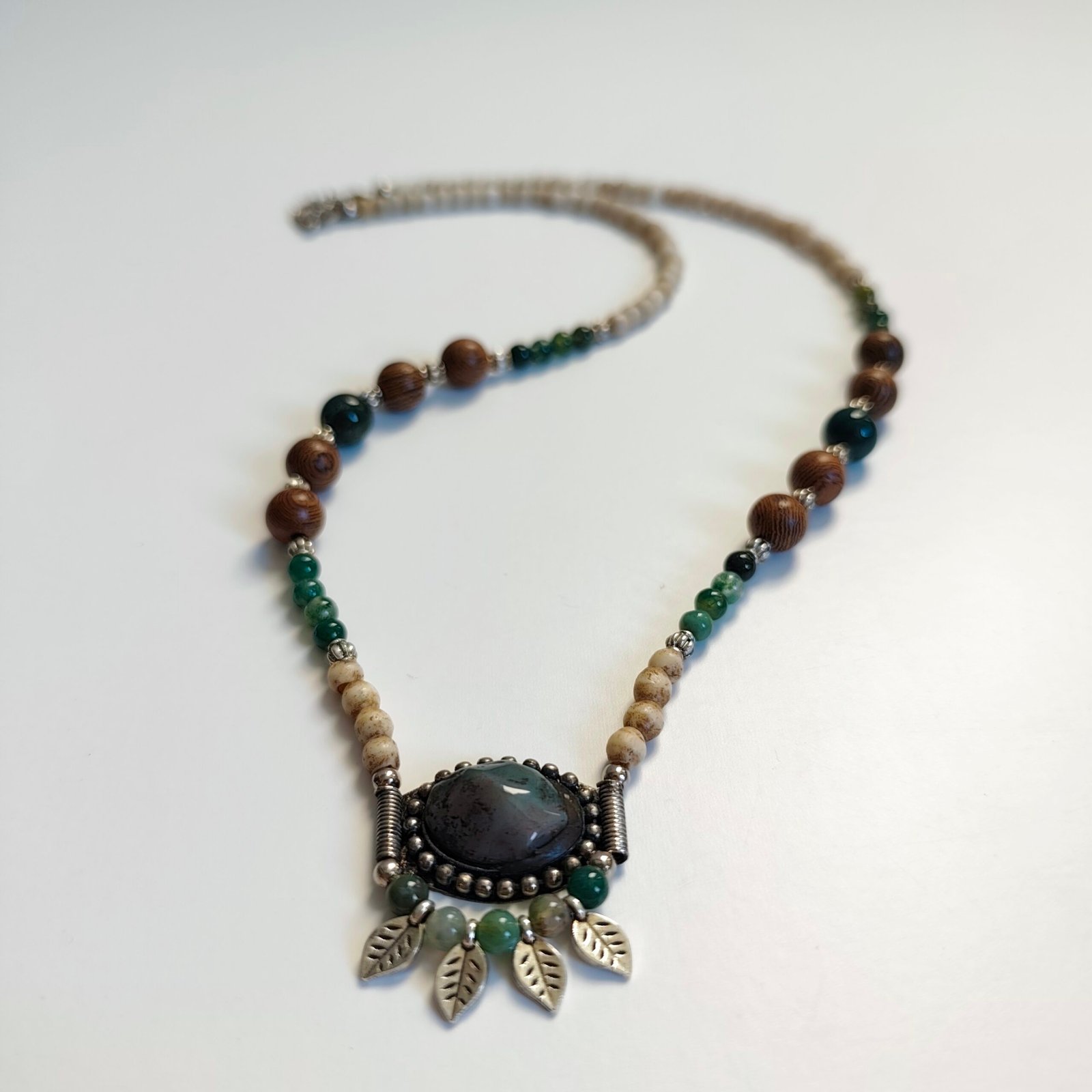 This Dreamcatcher necklace is a uniquely handcrafted piece of jewelry designed with natural stones and silver details. The necklace features a stylish and meaningful design, combining green aventurine, brown agate, and white howlite. The Dreamcatcher symbol symbolizes purification from negative energies and spiritual peace, and this necklace embodies this energy.