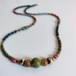 Metal and Natural Stones: Metal details add elegant sparkle to the necklace, while natural stones emphasize the bohemian style. The large green-toned bead, in particular, draws attention.