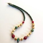 Green and Red Beads: The necklace is designed with natural stones and beads in green and red, adding a vibrant and energetic atmosphere.