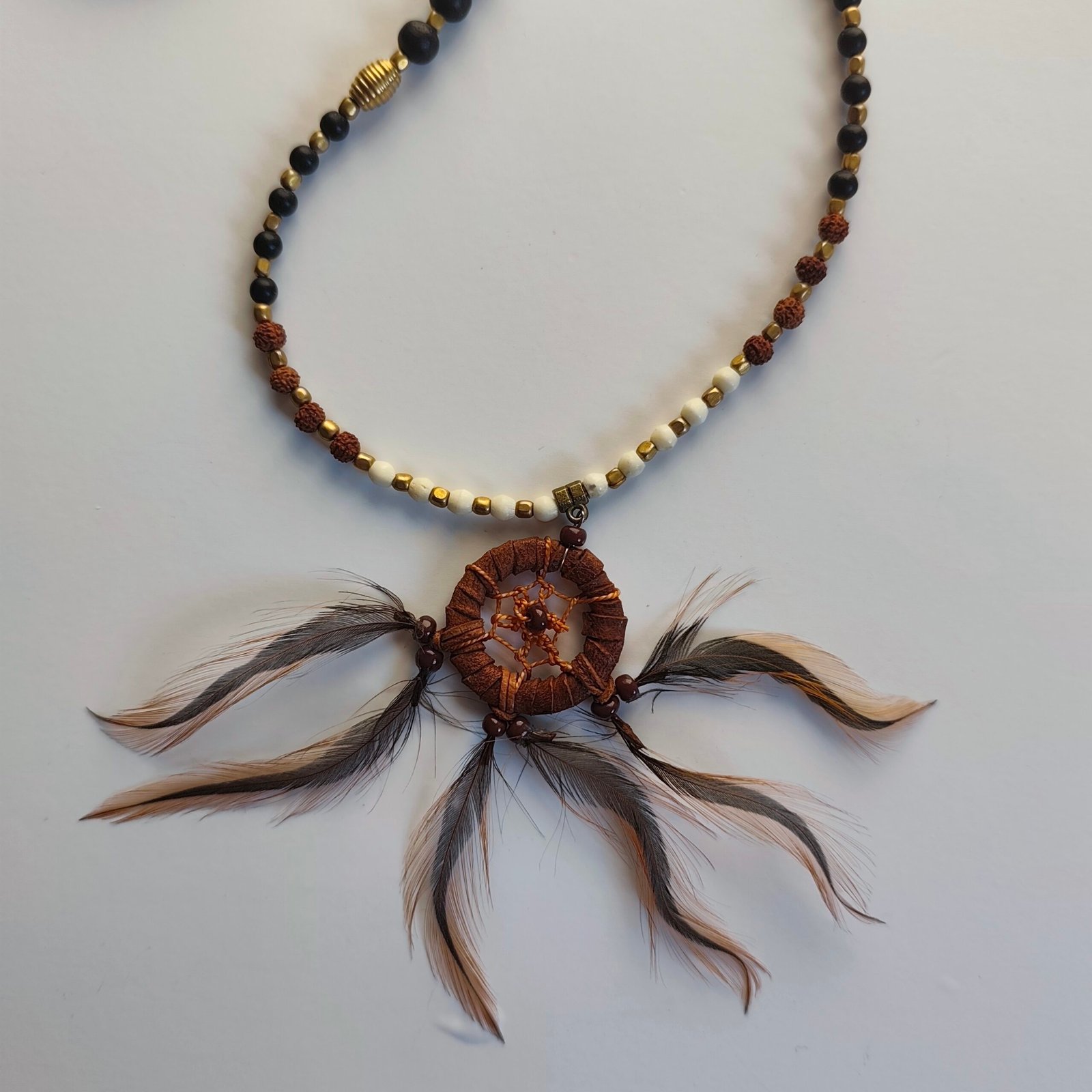 Dream Catcher Symbol: The necklace is adorned with the dream catcher symbol, which holds a significant place in shamanism. The feather details provide spiritual balance and protection.