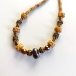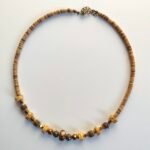 Wooden Beads and Natural Stones: The necklace is adorned with natural wooden beads, highlighting the natural feel. Brown stone details create an elegant harmony in warm, earthy tones.