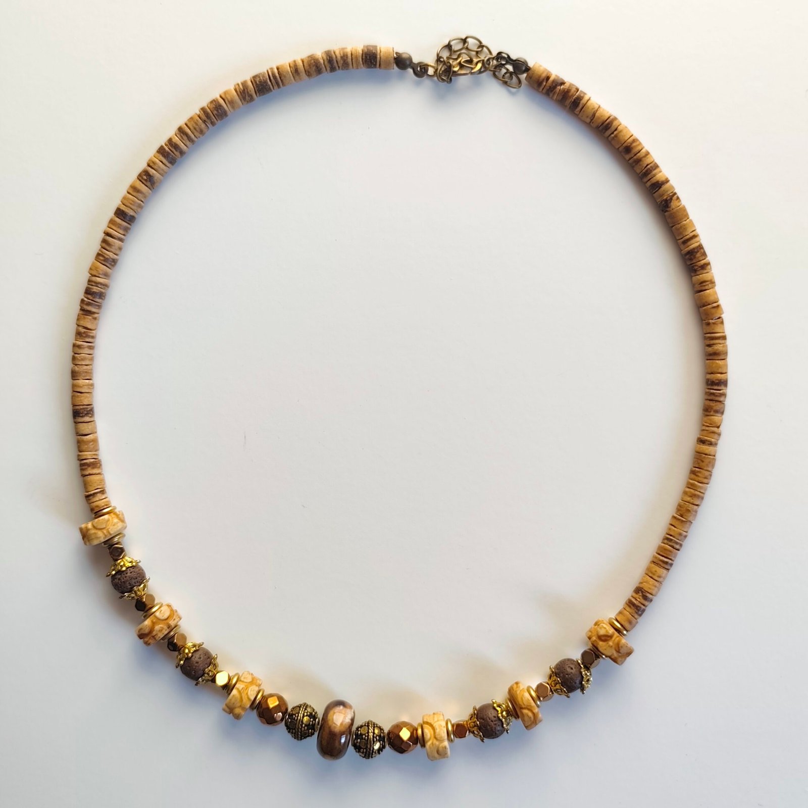This bohemian-style necklace, with its natural and warm tones, is a special accessory that complements any outfit.
