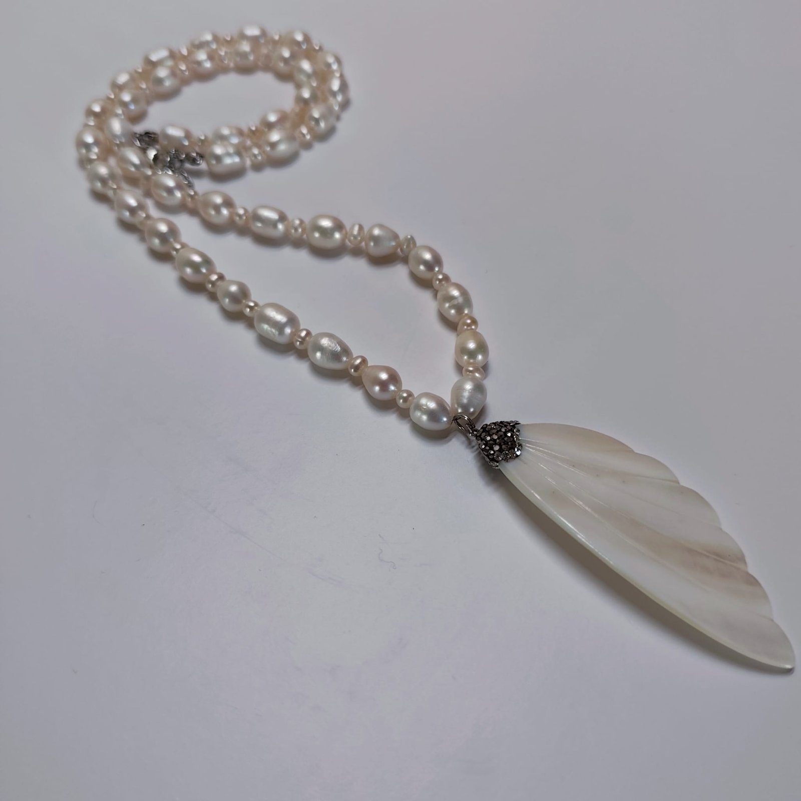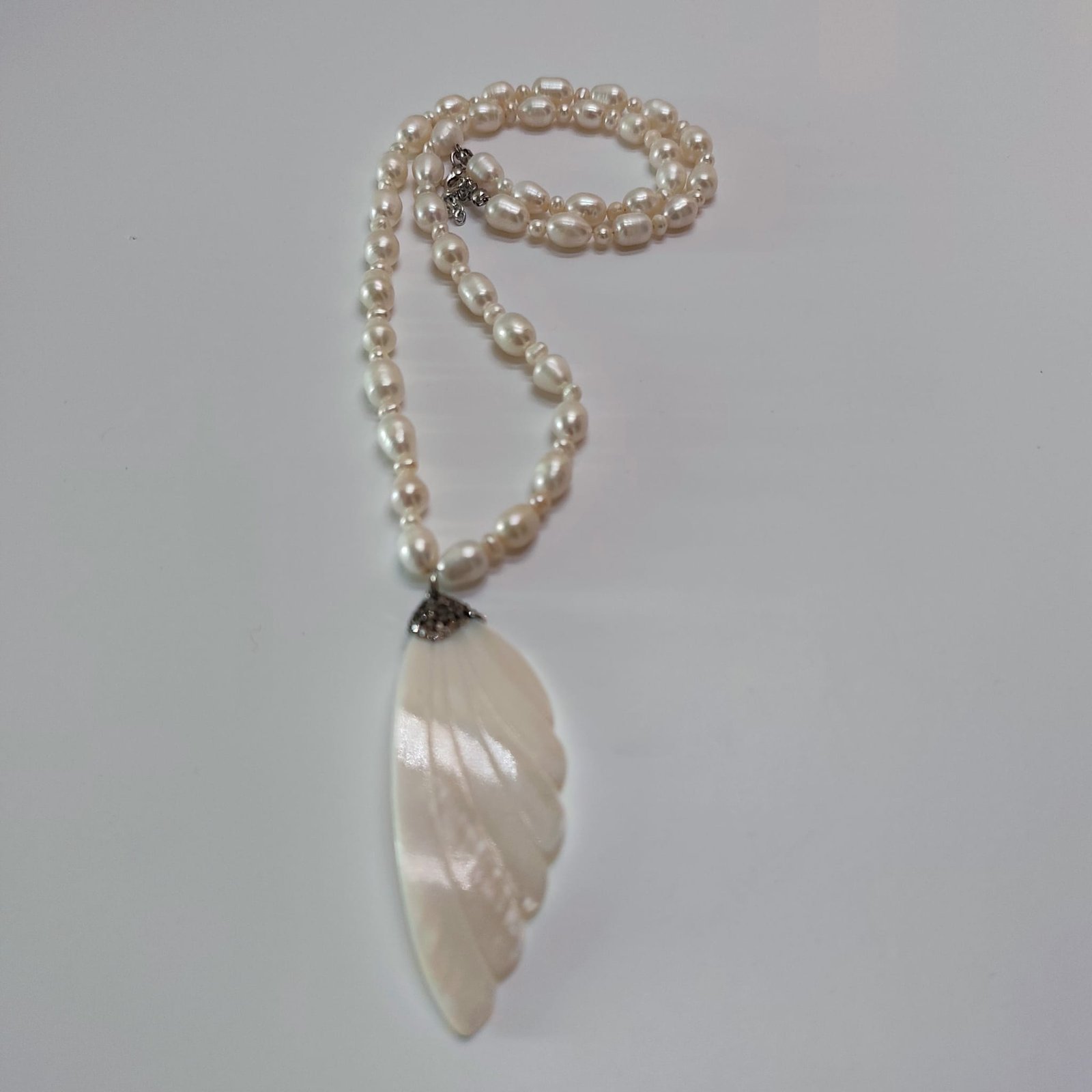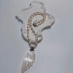 This elegant and stylish pearl necklace is designed with natural white pearl beads and a wing-shaped pendant. The wing symbolizes freedom and protection, while the pearl’s elegance and refinement add a sophisticated touch to the jewelry. This special design enhances your elegance in any setting and will make you feel special.