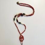 This handmade necklace, with its natural stones and bohemian design, offers both elegance and meaning. Enriched with red agate, green jade, purple, and white stones, the necklace, with its female symbol, symbolizes feminine energy and life force. The harmony of gold details and natural stones makes the necklace both elegant and striking.