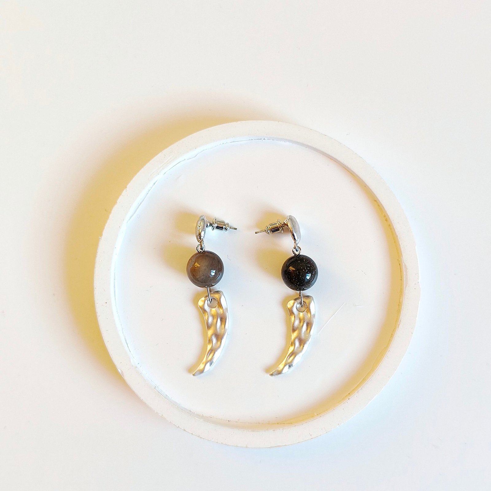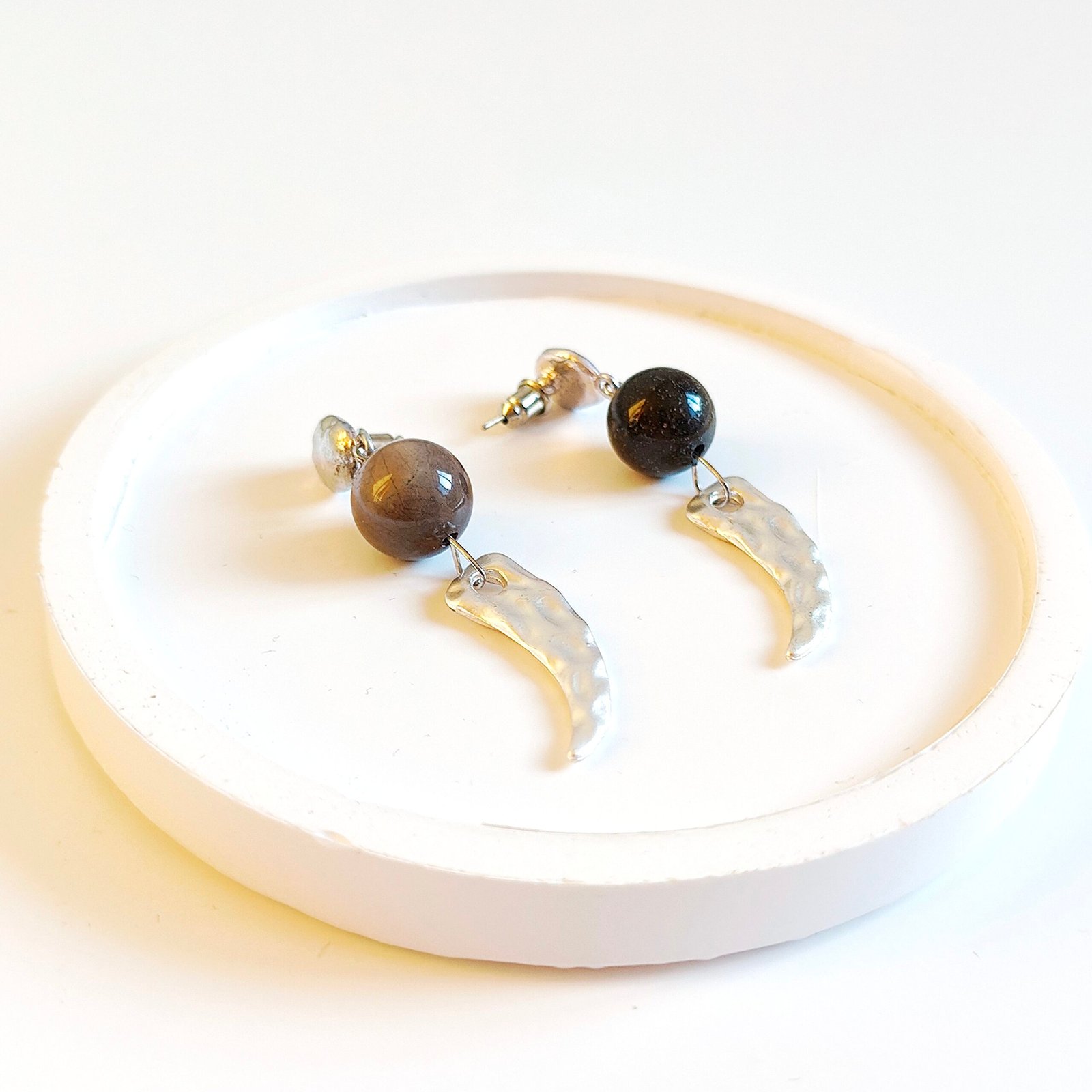 Combining minimalism with modern lines, these beaded metal dangle earrings elevate your style with their elegant and eye-catching design. The shimmering beads at the top combine with the curved metal details at the bottom for a unique look. Their lightweight and comfortable design makes them perfect for all-day wear.